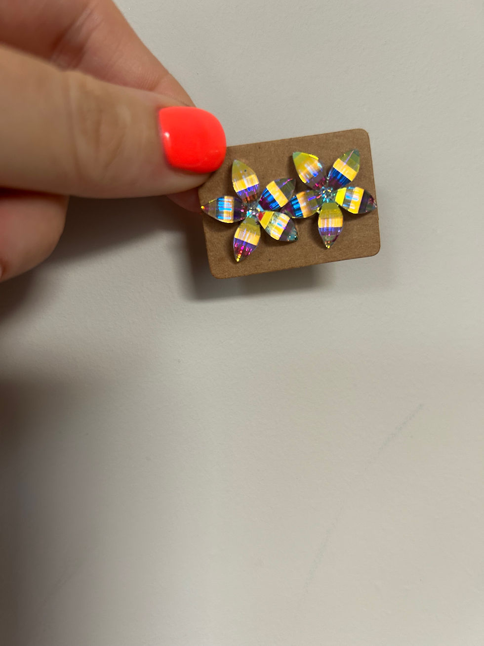 CRYSTAL AB DIAMOND/SQUARE STUD EARRINGS